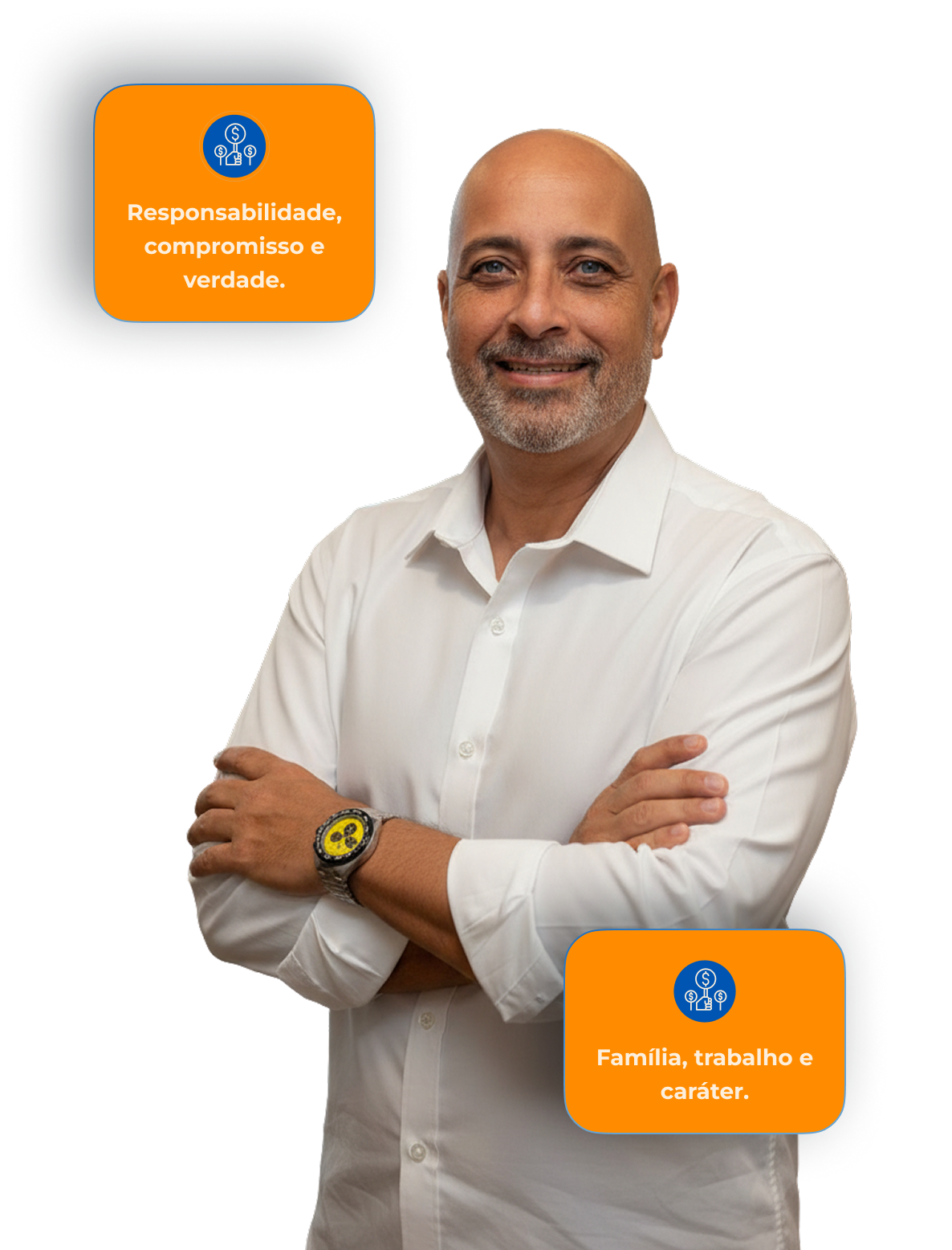 Sua base é clara: Deus, família, trabalho, coragem e caráter. Valores que orientam suas escolhas e a forma como conduz sua trajetória.